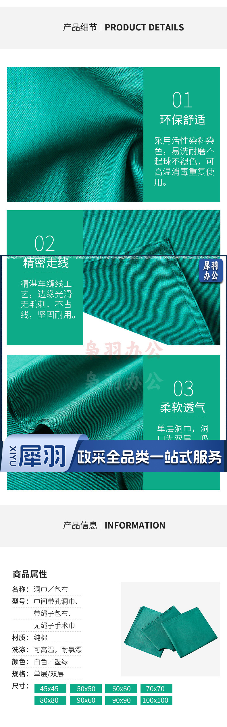 纯棉手术室包布洞巾(90*90单层)中单双层治疗巾孔巾铺巾口腔美容院医 院剖腹单
