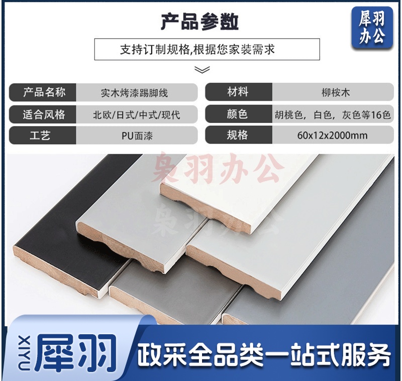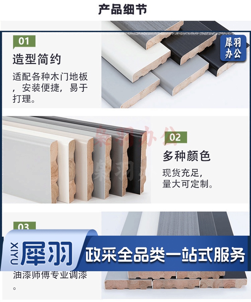 实木踢脚线墙角线工程装修用贴脚线现代简约黑白色北欧地脚线