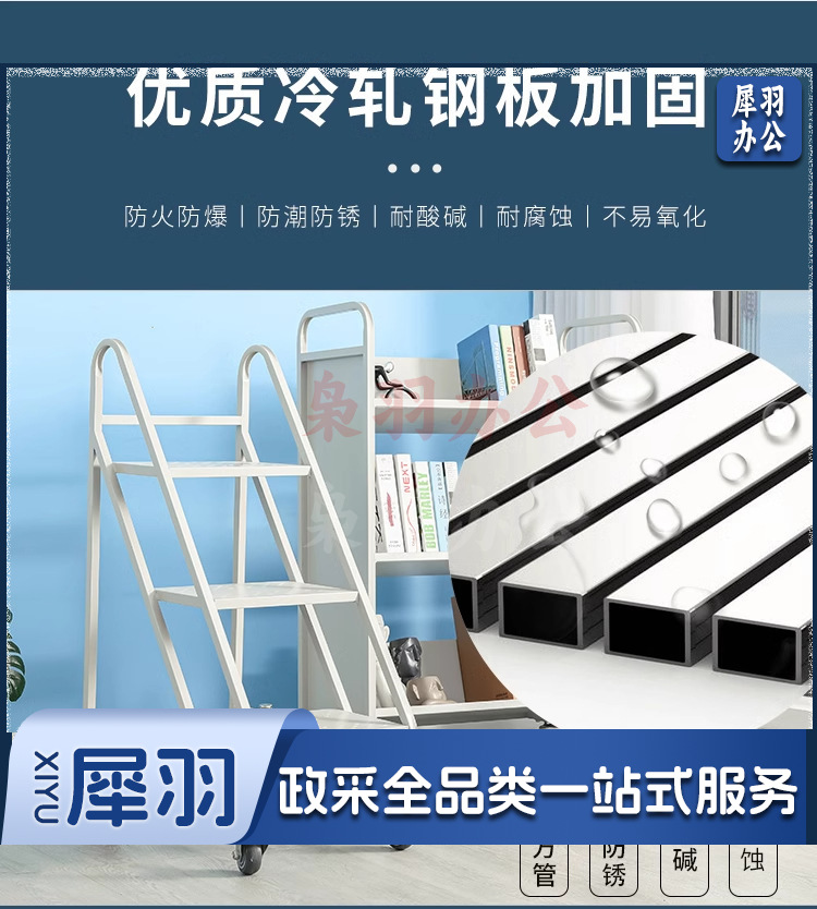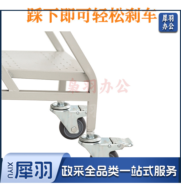 图书馆静音书车手推车(四步书梯)二层三层移动钢制书车三步登高梯