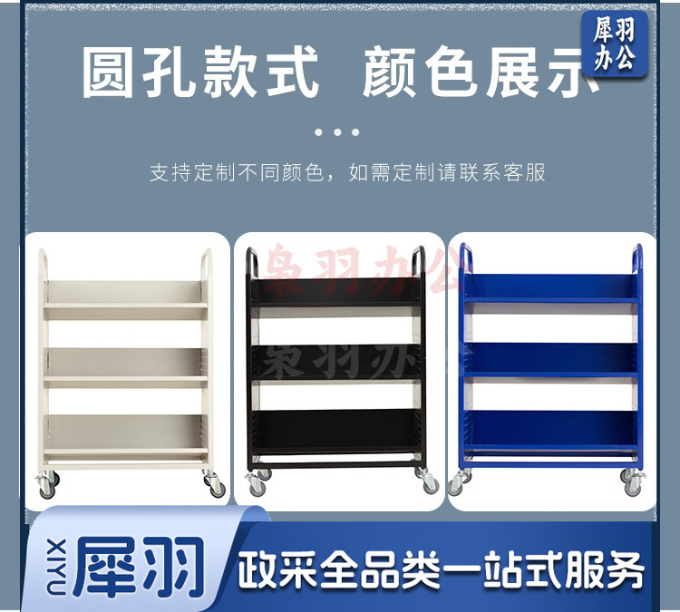 图书馆静音书车手推车(3层L型书车)二层三层移动钢制书车三步登高梯