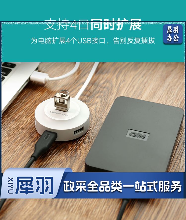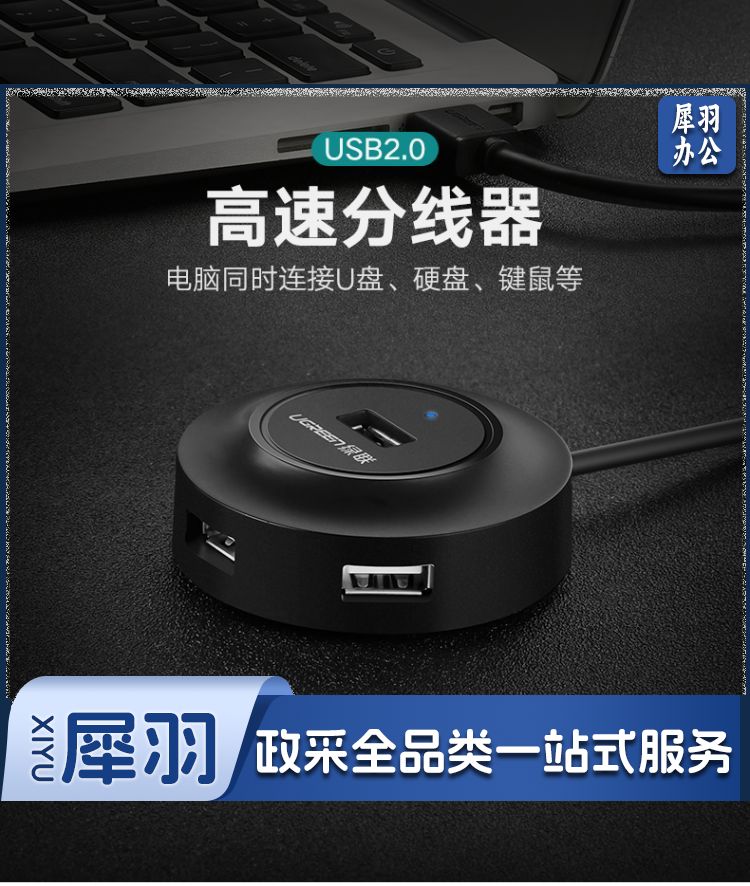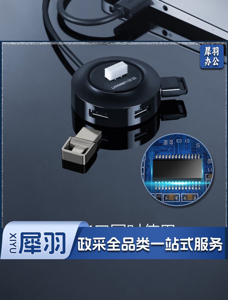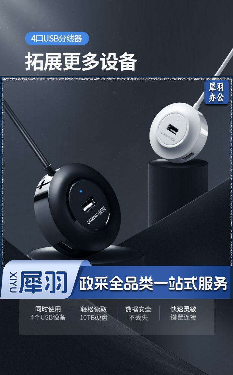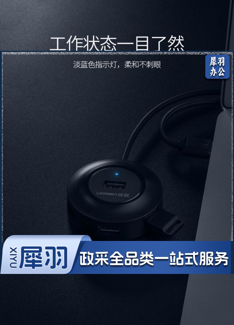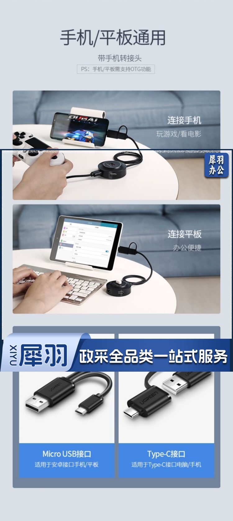 绿联 绿联usb分线器一拖四转换器笔记本电脑外接U盘拓展usp接口多功能USB-C集线器hub转接头黑色1米 40852