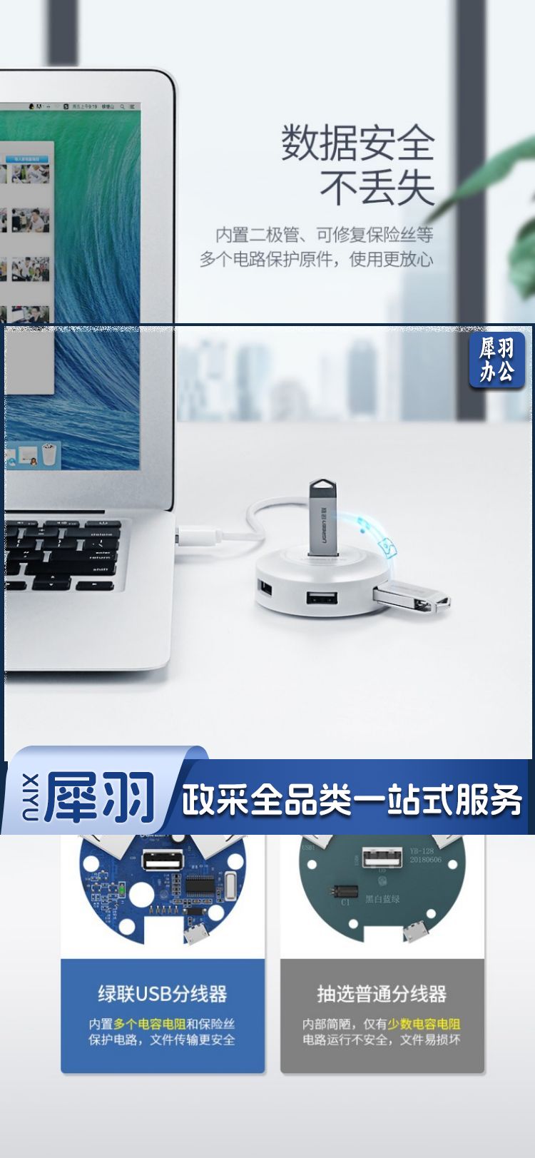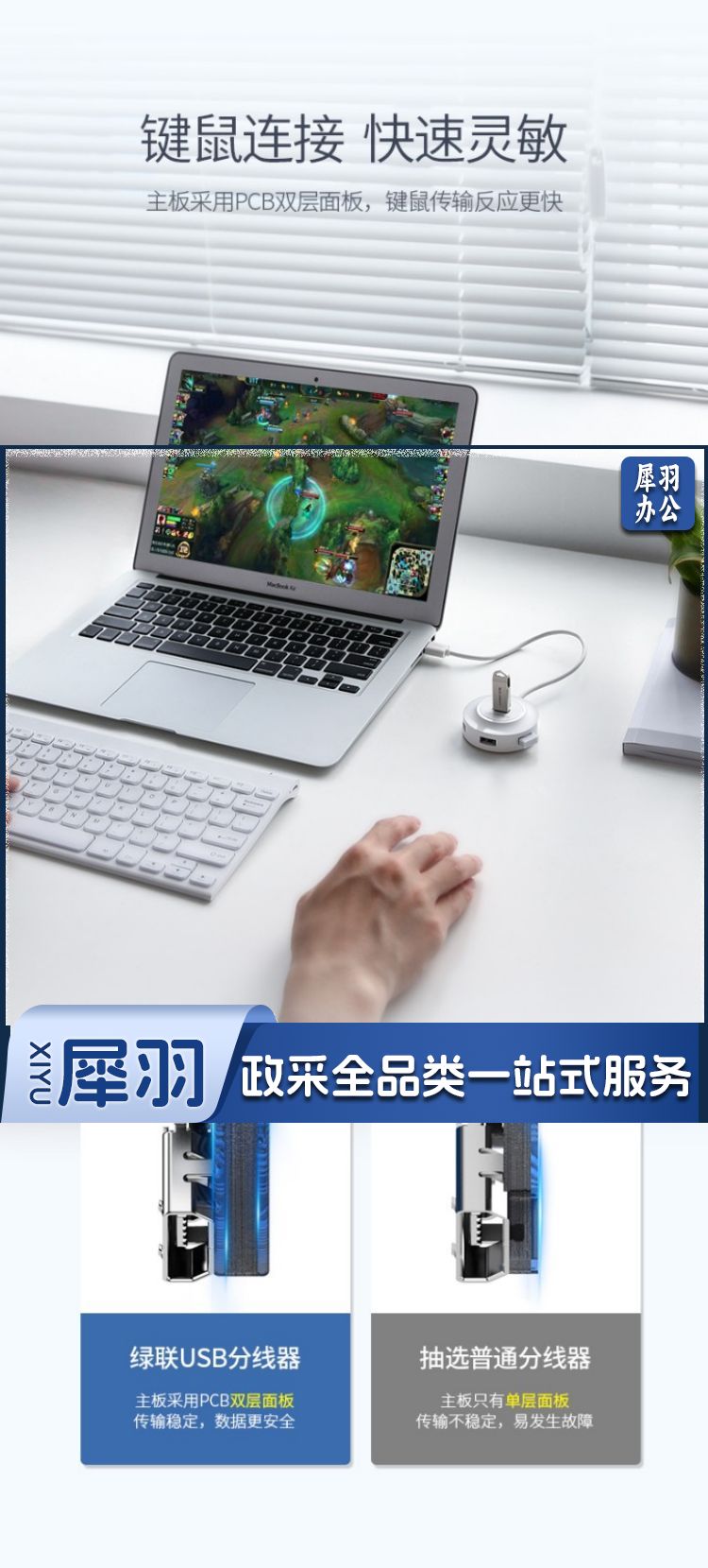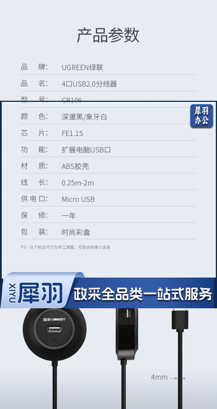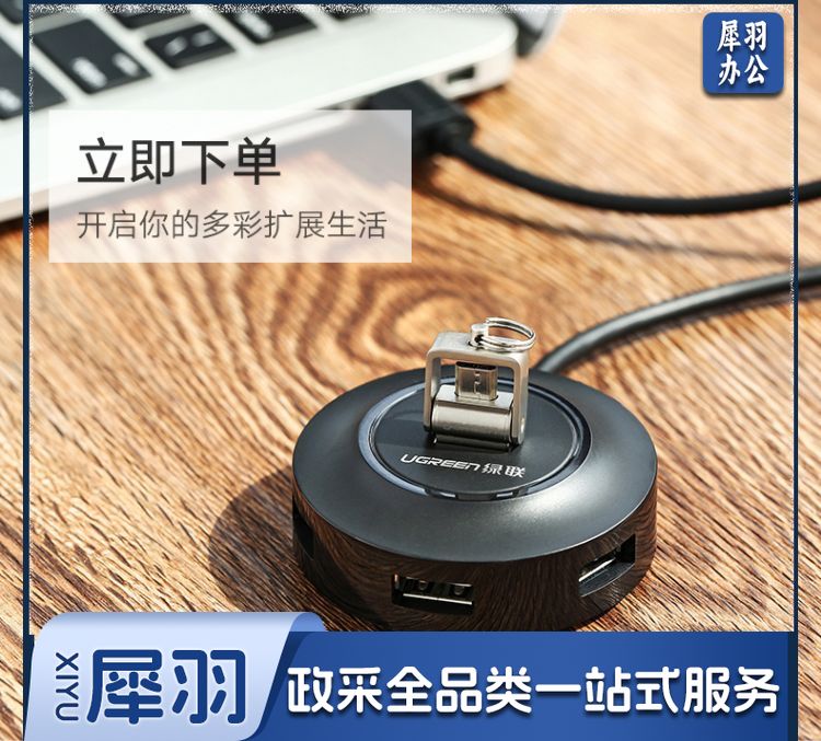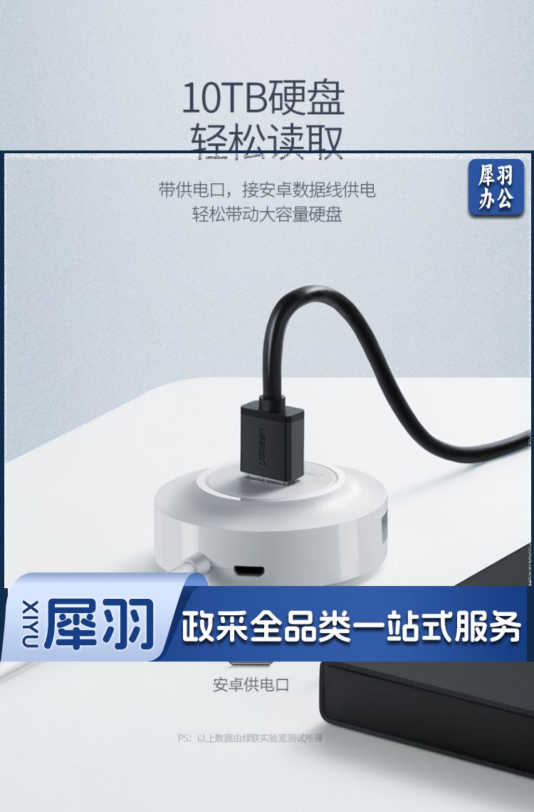 绿联 绿联usb分线器一拖四转换器笔记本电脑外接U盘拓展usp接口多功能USB-C集线器hub转接头黑色1米 40852