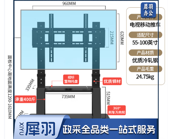 电视移动推车 适配尺寸 55-100英寸