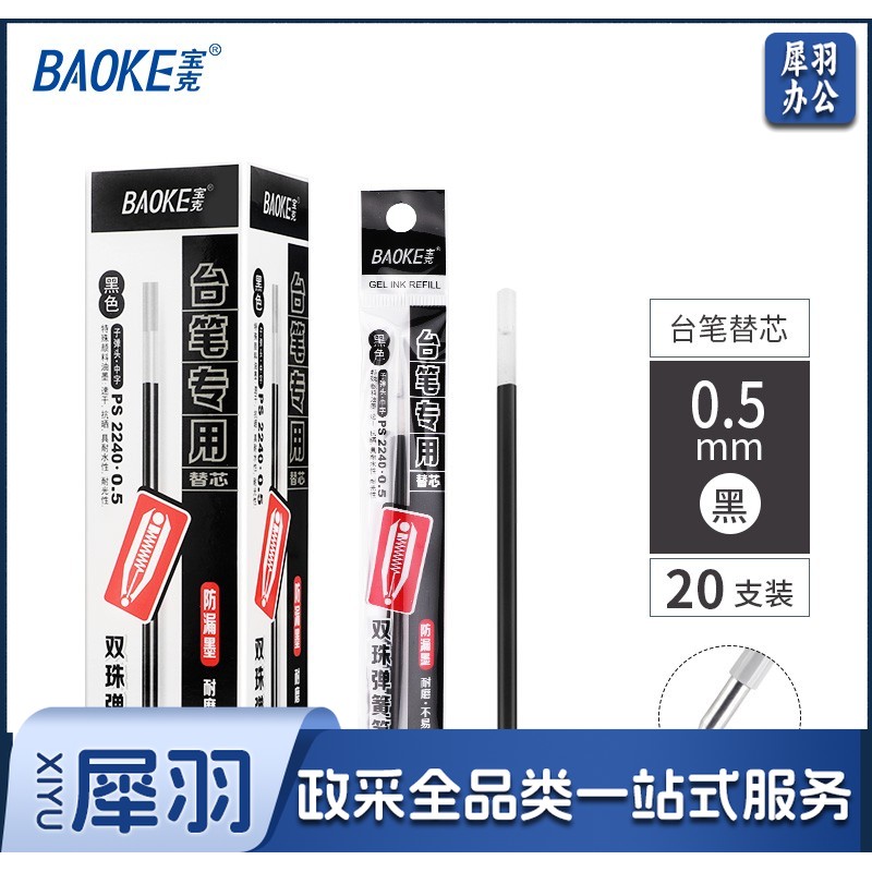 宝克(BAOKE) 笔芯 中性笔芯0.5mm台笔笔芯 黑色学生水笔替芯 柜台笔替芯 文具 20支/盒实惠装 PS2240.