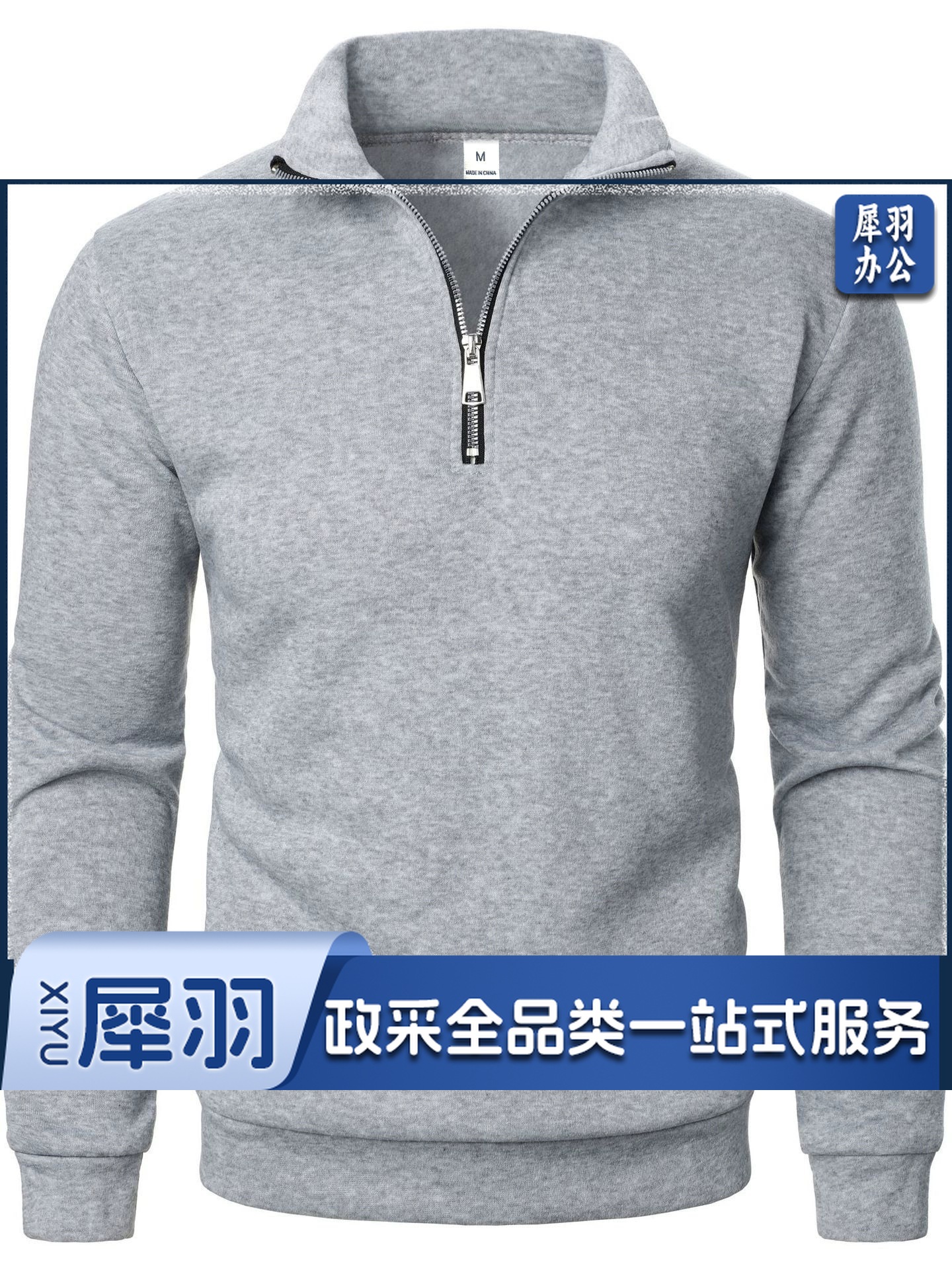拉链衫polo领重磅加绒卫衣秋冬款休闲运动宽松半拉链外套男女