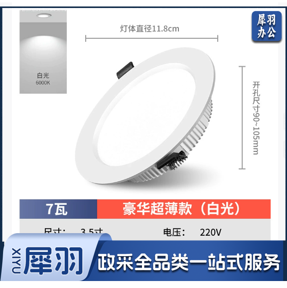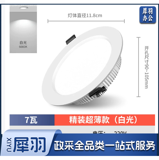 护眼超薄led筒灯嵌入式4寸5w6寸12w孔灯客厅18w天花灯15w高亮桶灯(豪华7瓦白光-开孔9-10.5cm)