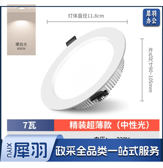 护眼超薄led筒灯嵌入式4寸5w6寸12w孔灯客厅18w天花灯15w高亮桶灯(精装7瓦中性光-开孔9-10.5cm)