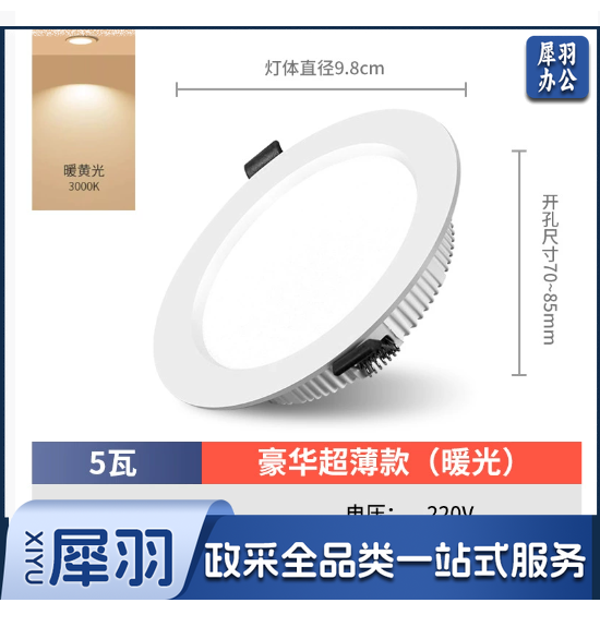 护眼超薄led筒灯嵌入式4寸5w6寸12w孔灯客厅18w天花灯15w高亮桶灯(豪华5瓦暖光-开孔7-8.5cm)