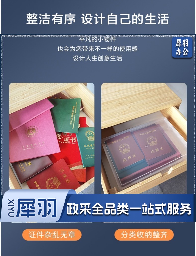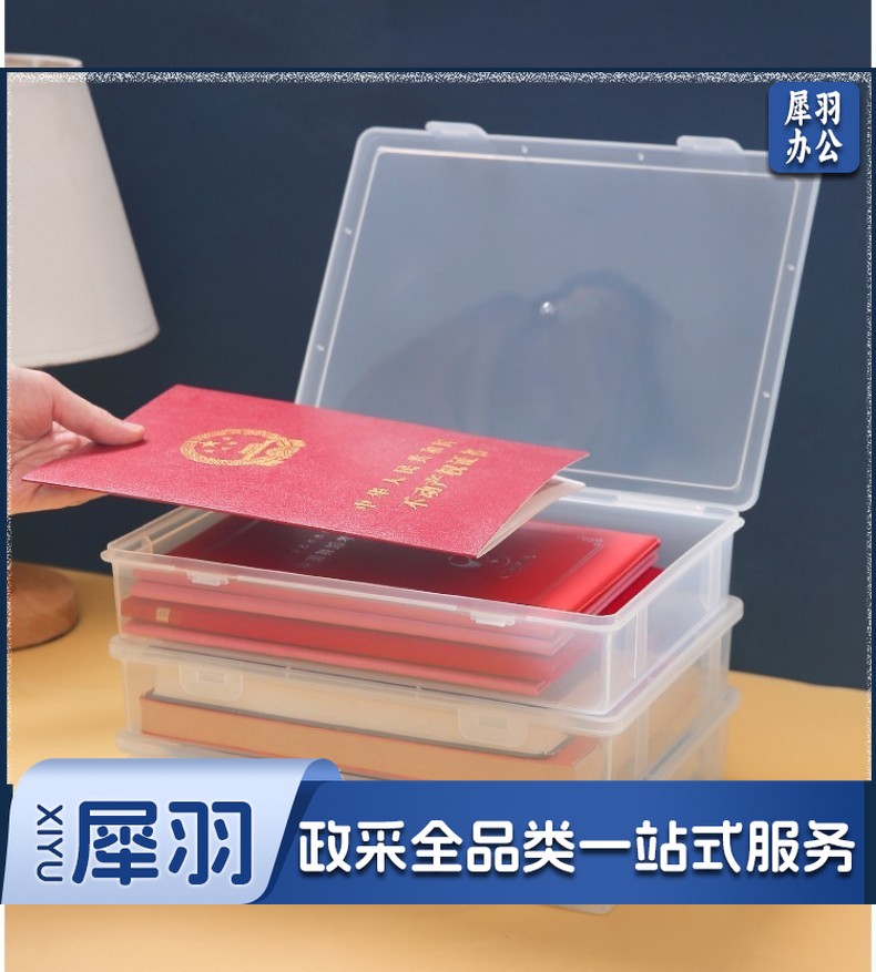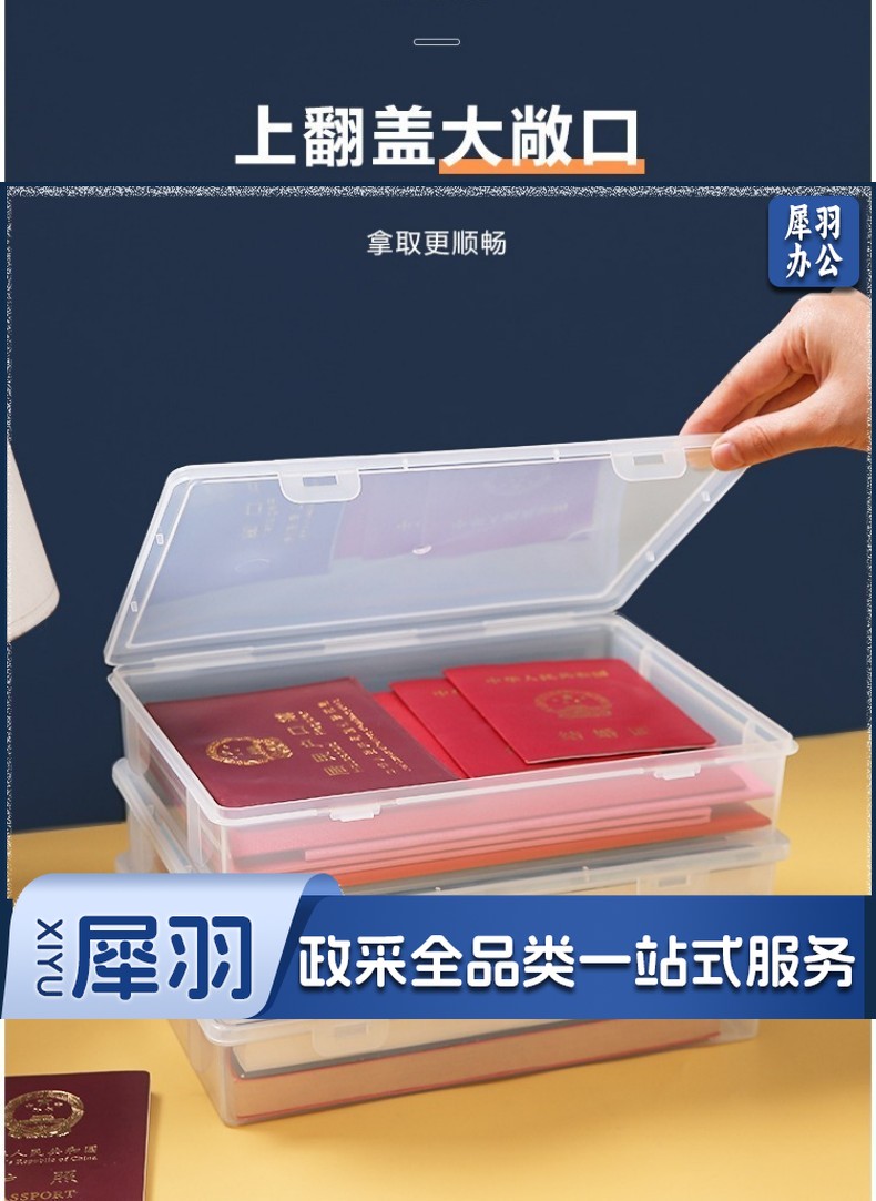 证件盒 A 4纸收纳盒家用透明文件证件储 物办公室桌面放打印纸资料整理盒