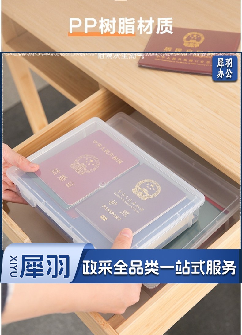 证件盒 A 4纸收纳盒家用透明文件证件储 物办公室桌面放打印纸资料整理盒