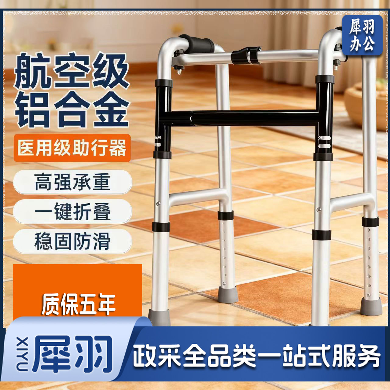 铝合金助行器/材质航空铝合金 手柄材质:泡棉 四脚可升降可折叠 最大承重140KG-160KG