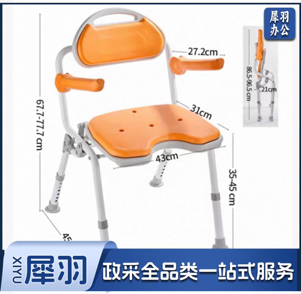 铝合金折叠防滑洗澡椅/尺寸:51.8*51.5*77.7cm座板靠背:HDPE 坐垫:弹性EVA 高度:6档可调防滑把手可上翻净重6.2KG承重:100KG