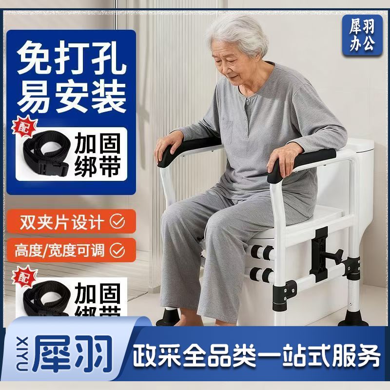 老人马桶扶手 老人助力架子 大螺纹防滑脚垫 小扶手2片夹