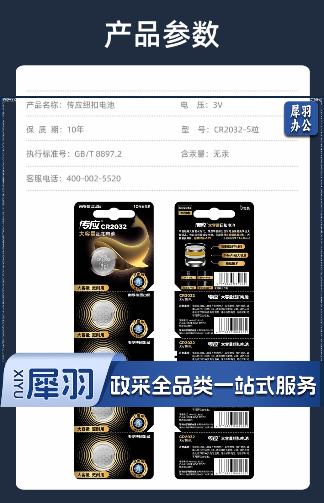 南孚传应纽扣电池 CR2032 锂3v适用大众现代宝马奔驰汽车钥匙遥控器台式电脑主板圆形电子秤 5粒装