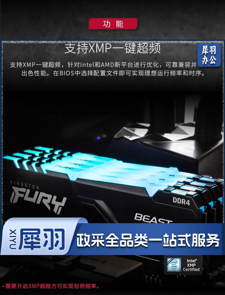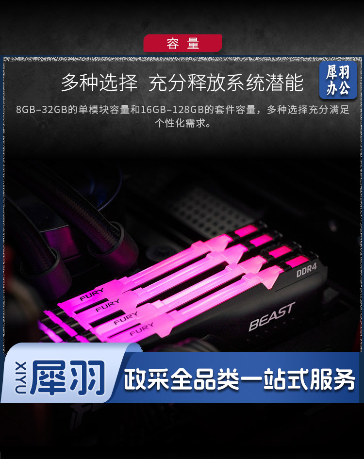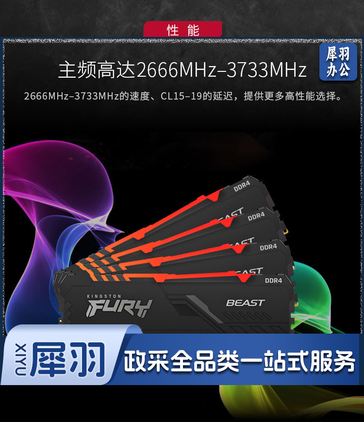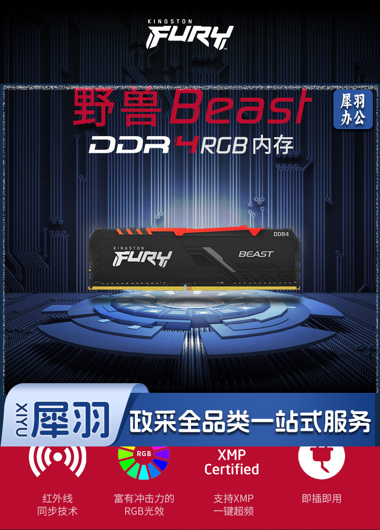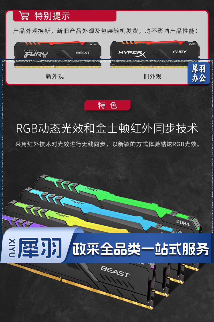 金士顿 FURY 16GB DDR4 3600 台式机内存条 Beast野兽系列 骇客神条 RRD4 野兽黑 16G 3600