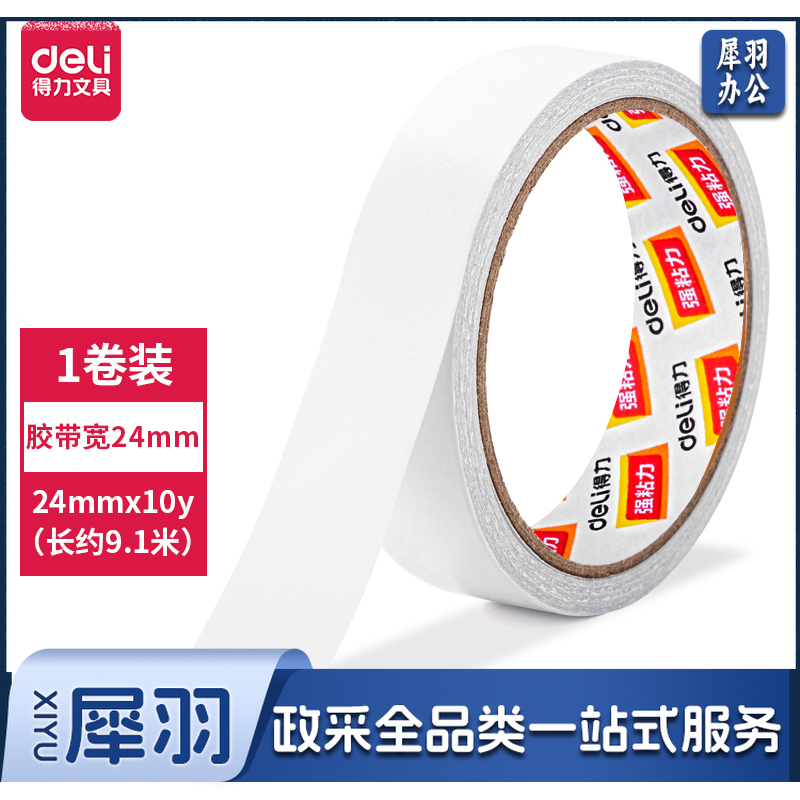 得力30407棉纸双面胶带24mm*10y(1卷/袋)
