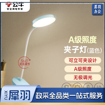 公牛(BULL)A级照度ML-D005C-DS充插两用无极调光宿舍LED夹子台灯蓝色4000K