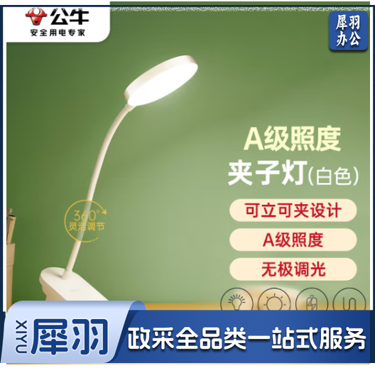 公牛(BULL)A级照度ML-D005A-DS充插两用无极调光宿舍LED夹子台灯白色4000K