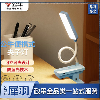 公牛(BULL)台灯ML-D004B-FD充插两用床头宿舍寝室LED夹子台灯3档亮度蓝色