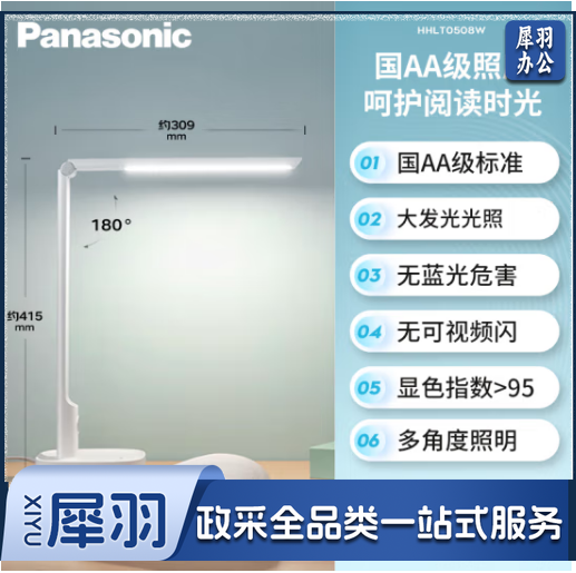 松下(Panasonic)HHLT0508W学习护眼智能台灯国AA级连续调亮学生宿舍阅读灯卧室床头灯 致絮