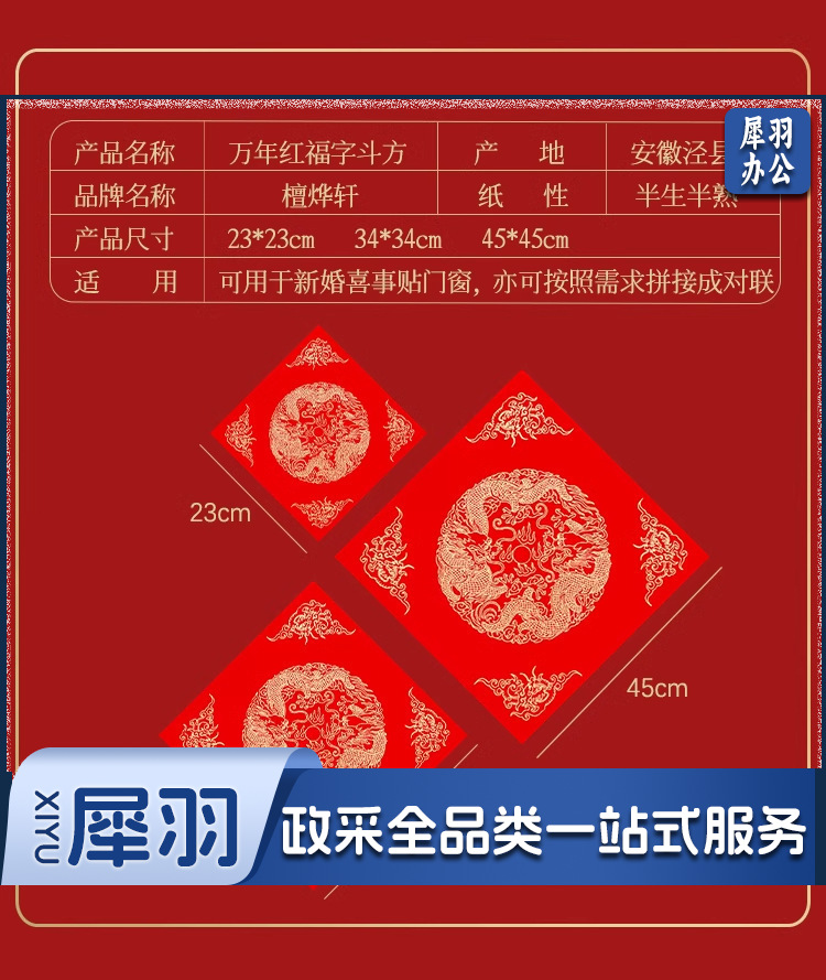 万年红福字加厚春联纸斗方对联纸空白红纸手写的宣纸批发洒金门贴(空白洒金 20张/包)