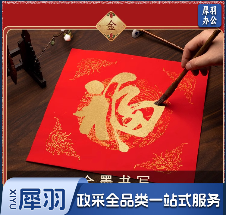 万年红福字加厚春联纸斗方对联纸空白红纸手写的宣纸批发洒金门贴(五福临门45*45cm*20张/包)