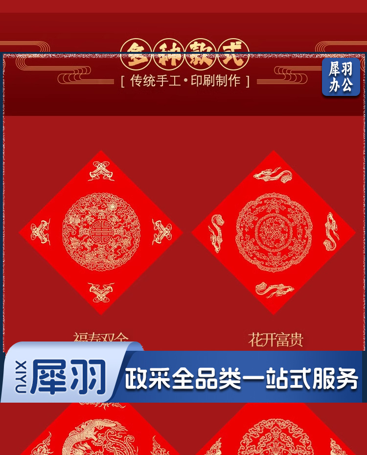万年红福字加厚春联纸斗方对联纸空白红纸手写的宣纸批发洒金门贴(五福临门34*34cm*20张/包)