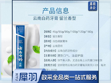 云南白药牙膏 清新口气 健齿护龈 留兰香型100g