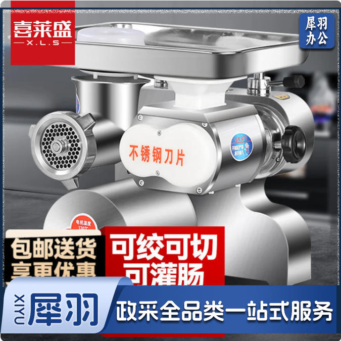 喜莱盛(XENESEN)绞肉机商用切肉机电动灌肠机全自动切片机切丝机肉馅机 12型绞切两用-不锈钢大肉盘1500W
