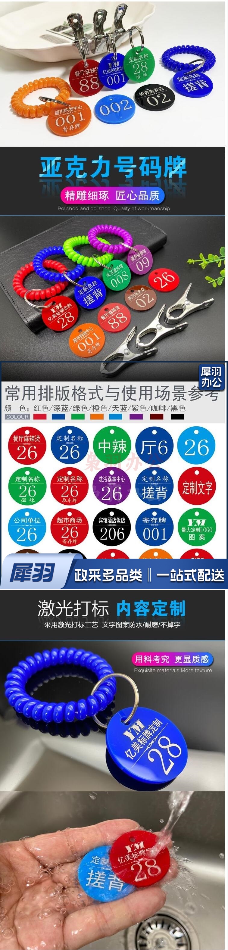 手牌号码牌数字编号牌 亚克力餐牌 叫号牌 含:2牌+2圈+1夹+1手环 (最低起定量为50套)