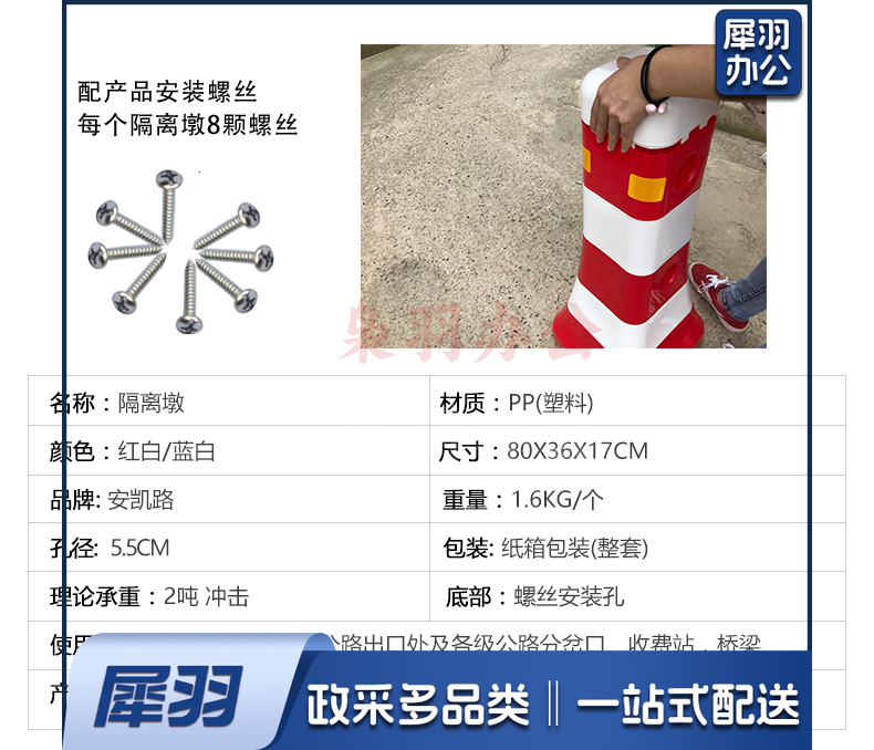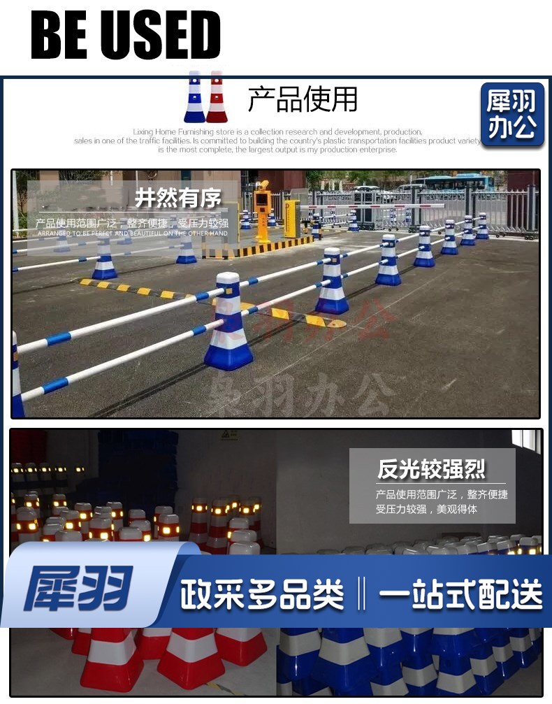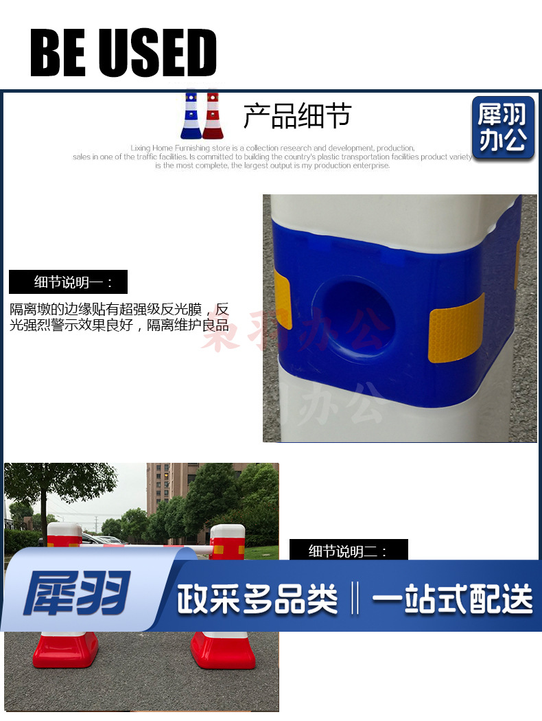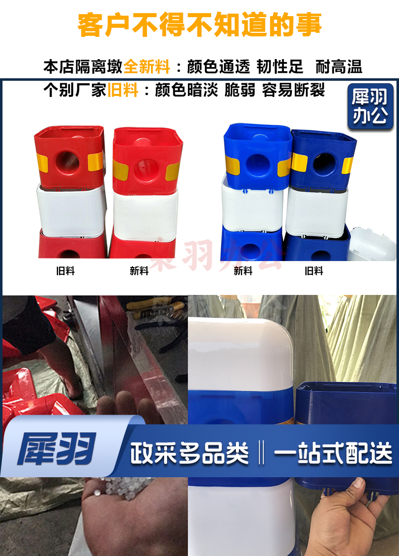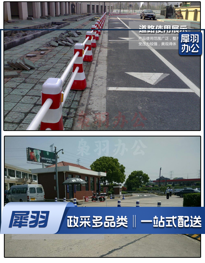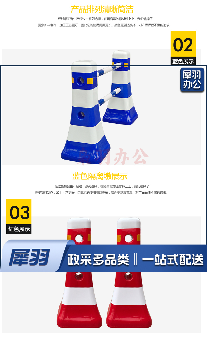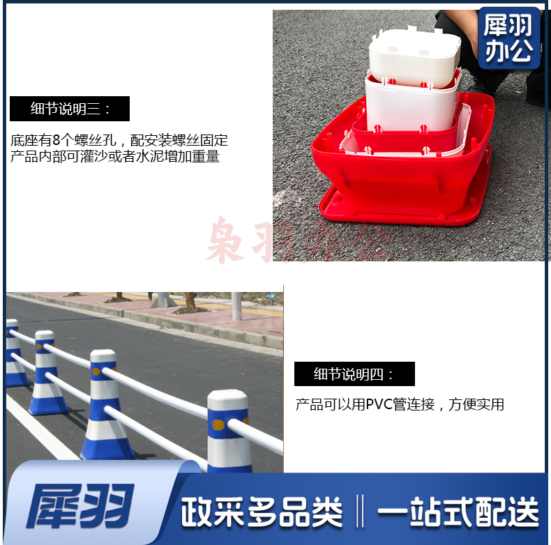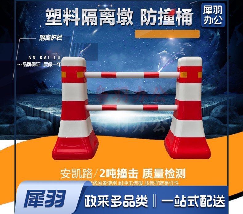 交通设施 分流水马 隔离墩 防撞桶 塑料围栏 道路护栏 一套(2个路墩,2个2米杆架)