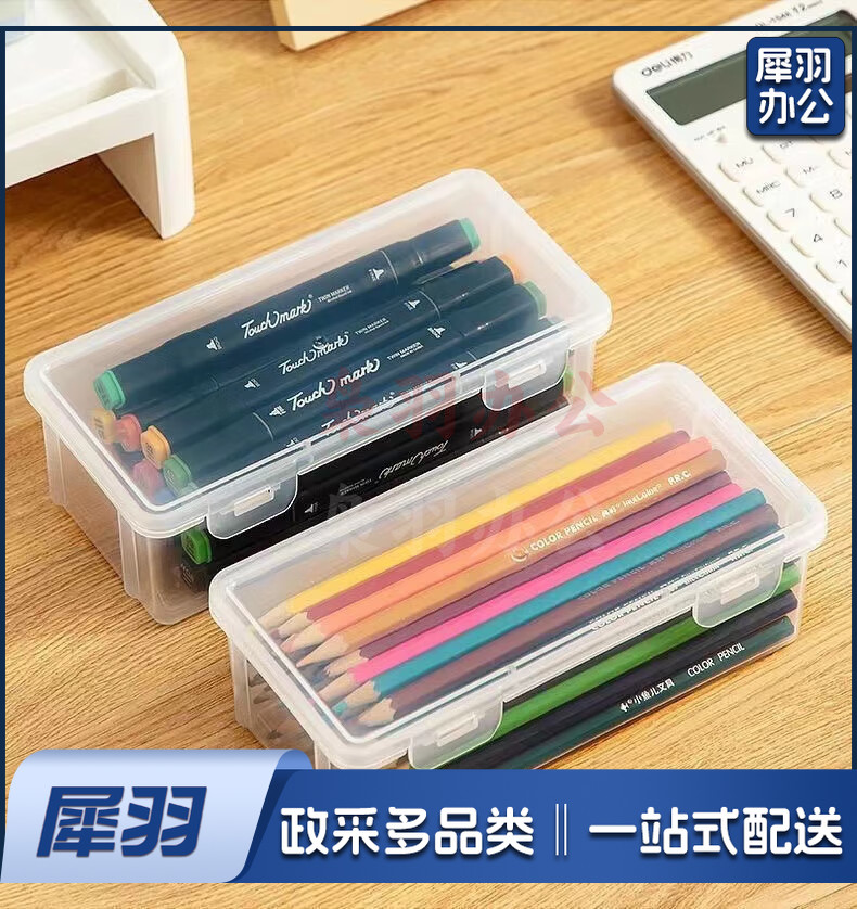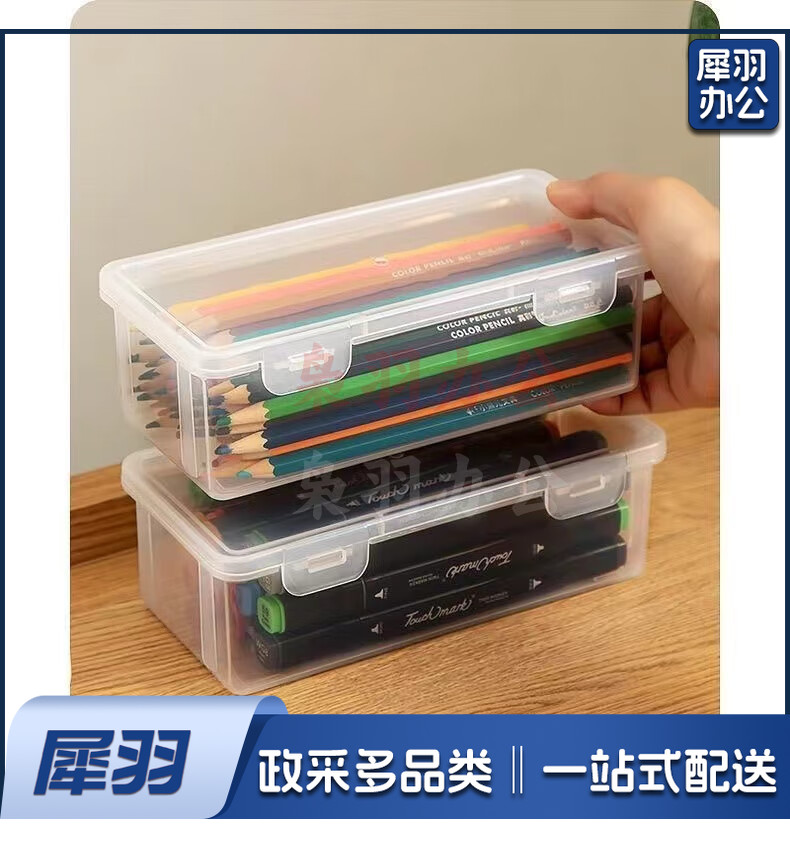 透明文具收纳盒多功能收纳盒大容量笔筒装按动中性蜡笔 2个【多功能收纳盒】