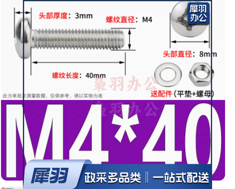 不锈钢圆头螺丝螺母套装大全螺栓垫片组合m4*40