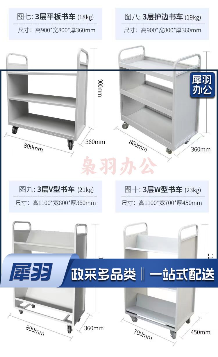 图书馆书车档案室专用二层平板三层V型W型移动手推车两步三步书梯 (三层平板双面书车)规格齐全 团购或购买其它型号请咨询客服五金附件