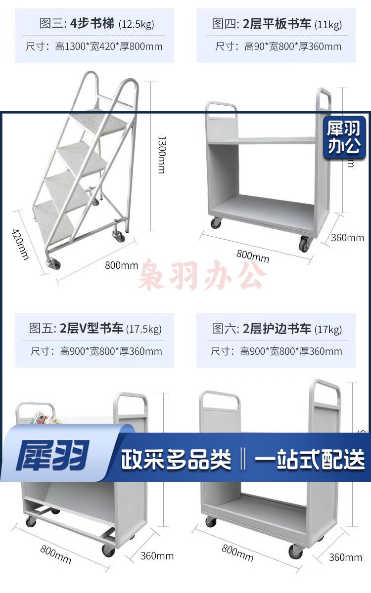 图书馆书车档案室专用二层平板三层V型W型移动手推车两步三步 书梯 登高梯(二层书梯白色)规格齐全 团购或购买其它型号请咨询客服五金附件