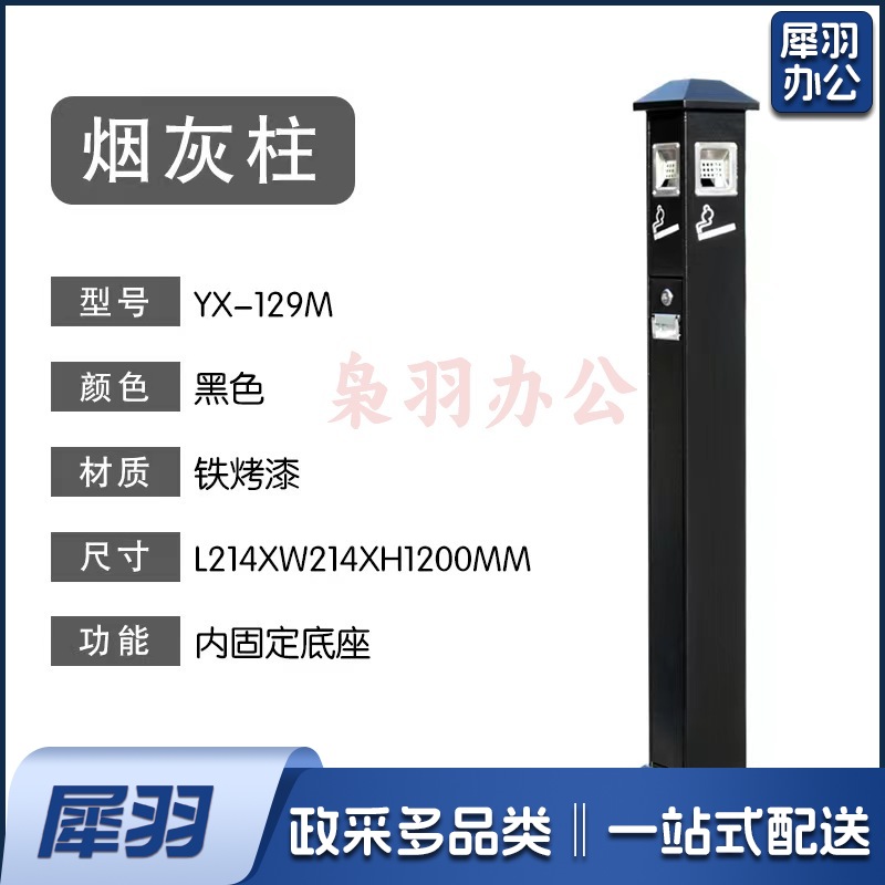单位学校烟灰柱立式烟蒂柱立式烟灰桶烟蒂柱户外灭烟桶户外吸烟区烟灰缸室外落地灭烟垃圾桶 铁烤漆黑色 内固定底座 可定制标语LOGO