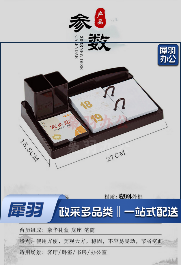 台历架摆件塑料创意多功能笔筒商务办公桌摆座日历 GW-19035 紫红色