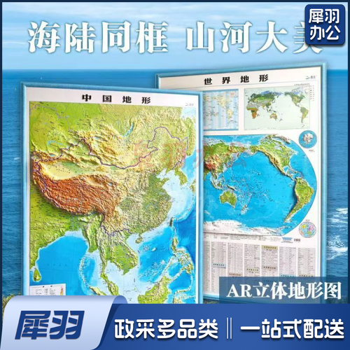 凹凸立体地形图【110*78竖版】中国+世界共两张