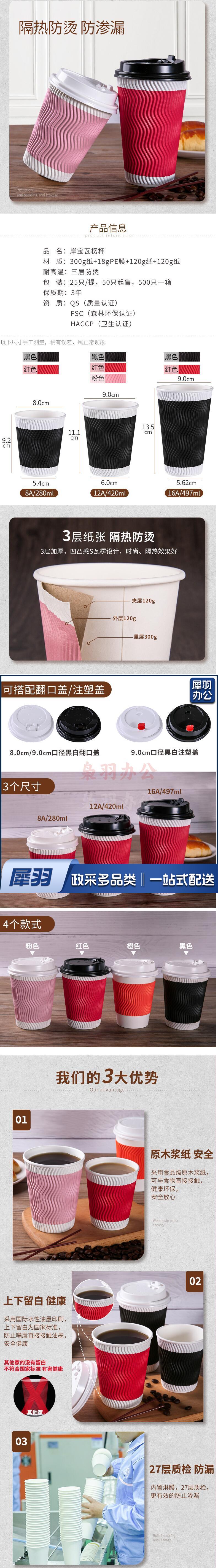 纸杯 一次性杯子 奶茶杯 瓦楞杯 带盖 红色