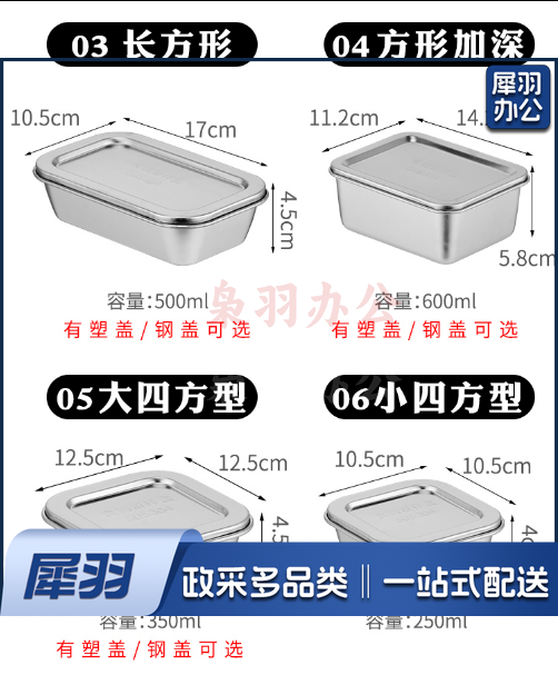 不锈钢留样盒幼儿园学校餐厅厨房食物留样食品级304(正方形带钢盖) 留样250克内