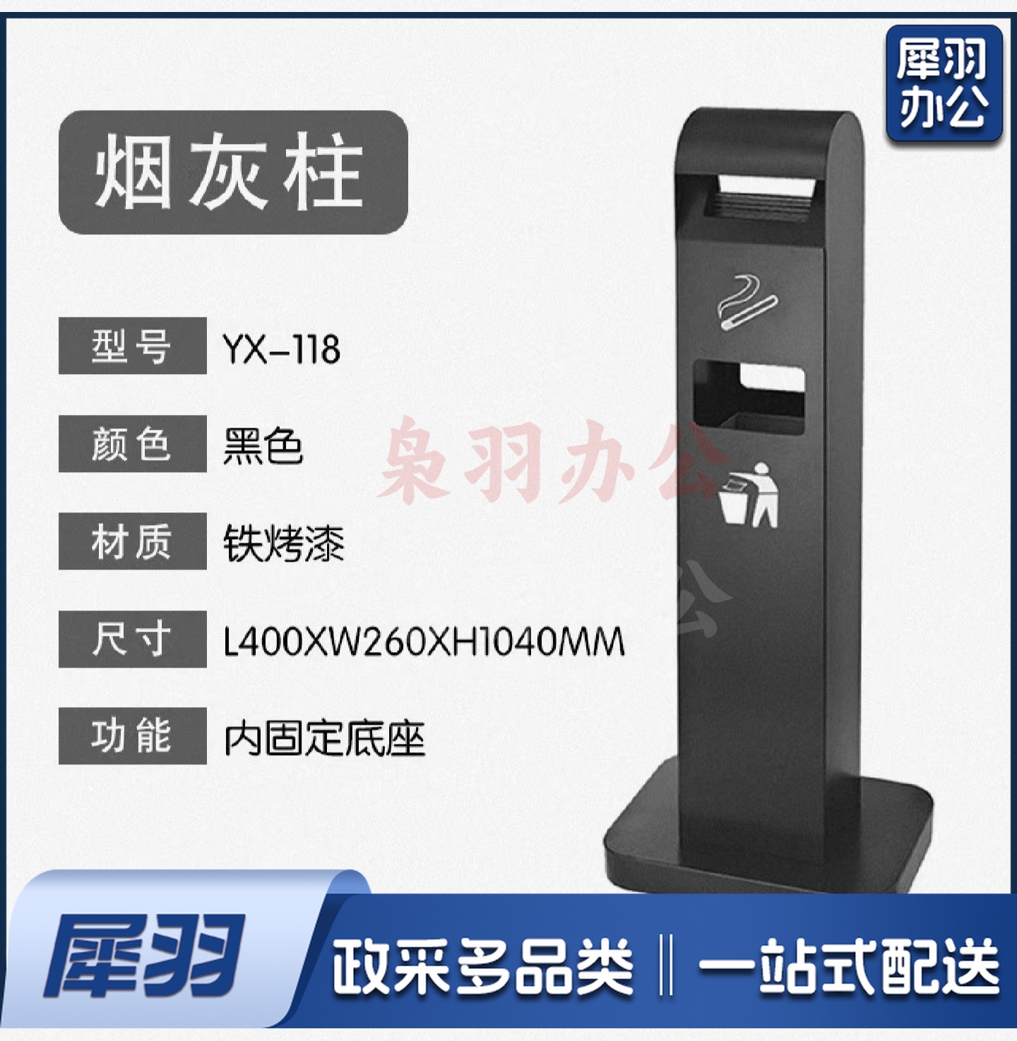 单位学校吸烟柱烟灰柱立式烟蒂柱立式烟灰桶烟蒂柱户外灭烟桶户外吸烟区烟灰缸室外落地灭烟垃圾桶 铁烤漆黑色 可定制标语LOGO