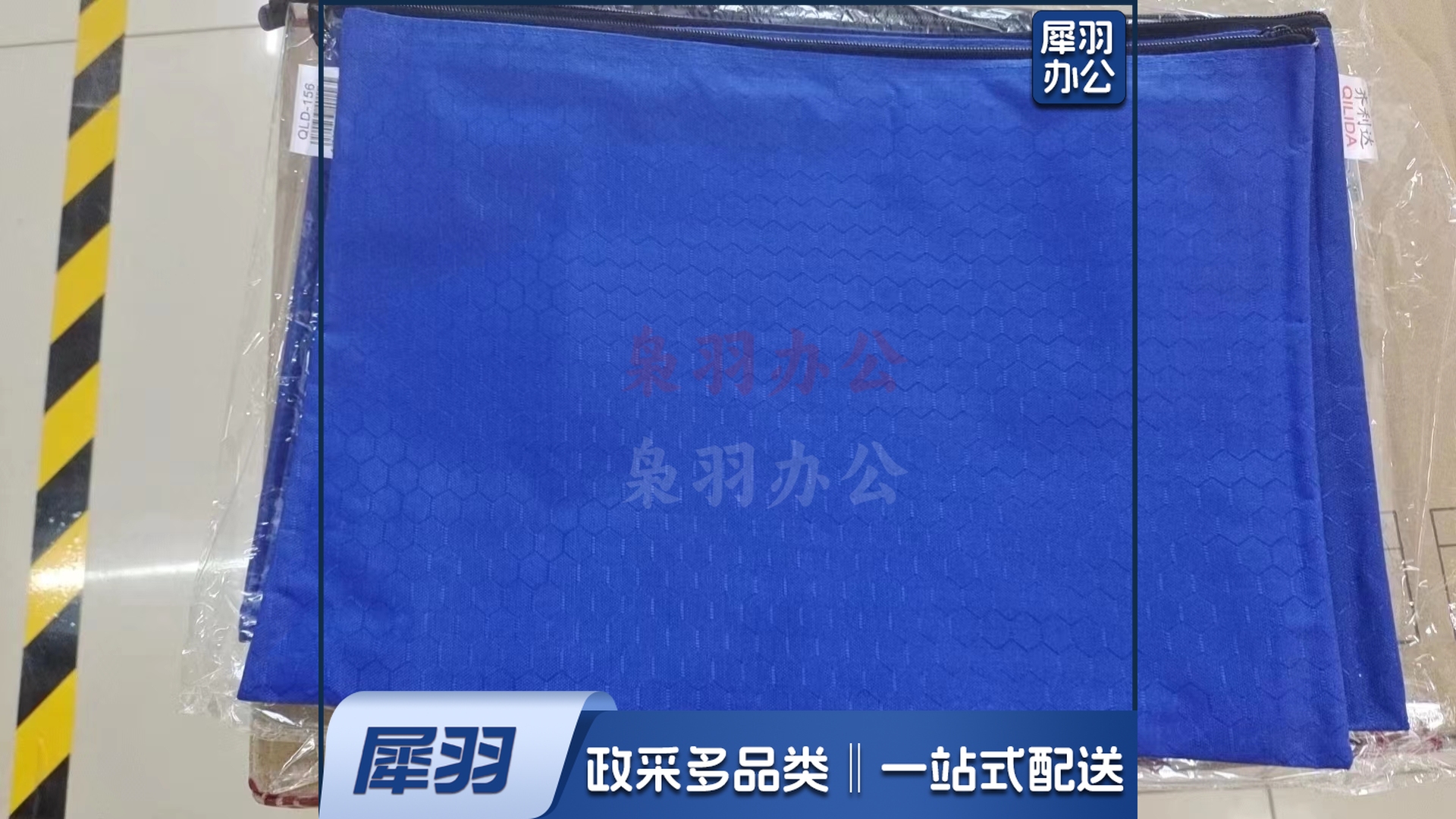 文件袋足球纹A 4拉链资料袋防水帆布加厚蓝色