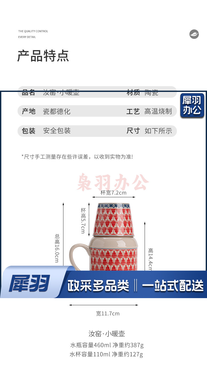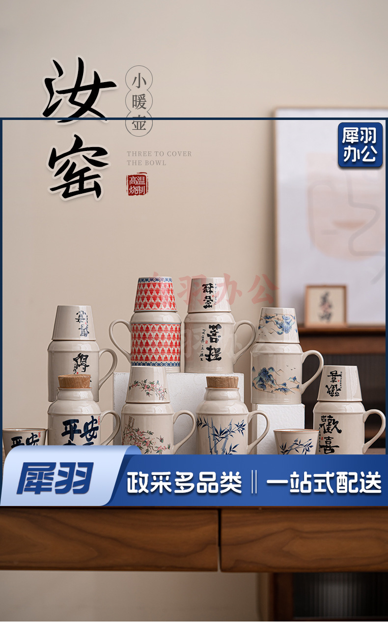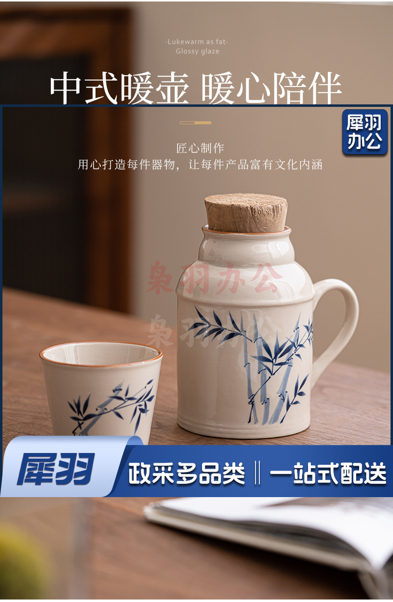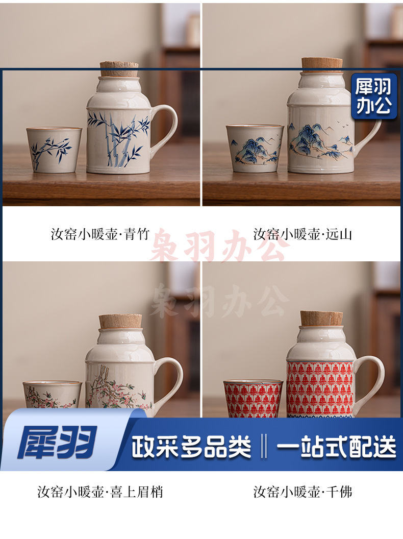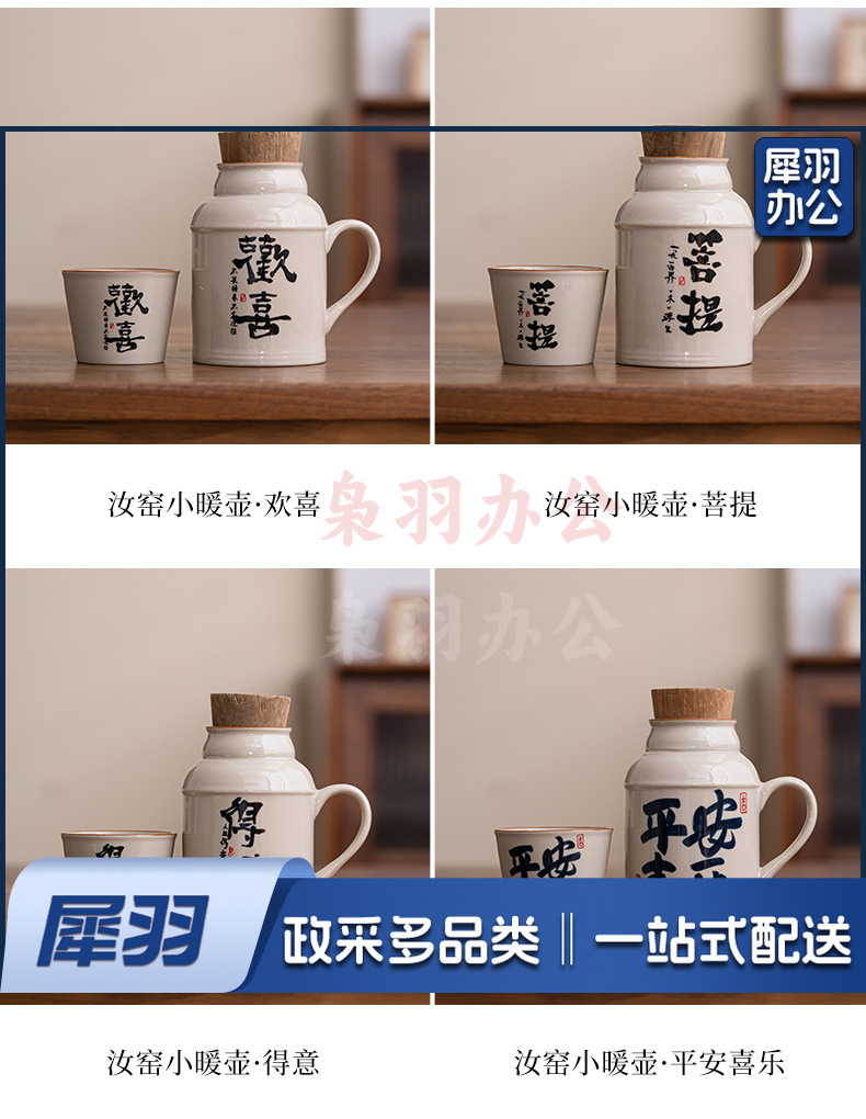 汝窑小暖壶马克杯带盖陶瓷焖茶杯中式大容量保温瓶办公杯子带手柄