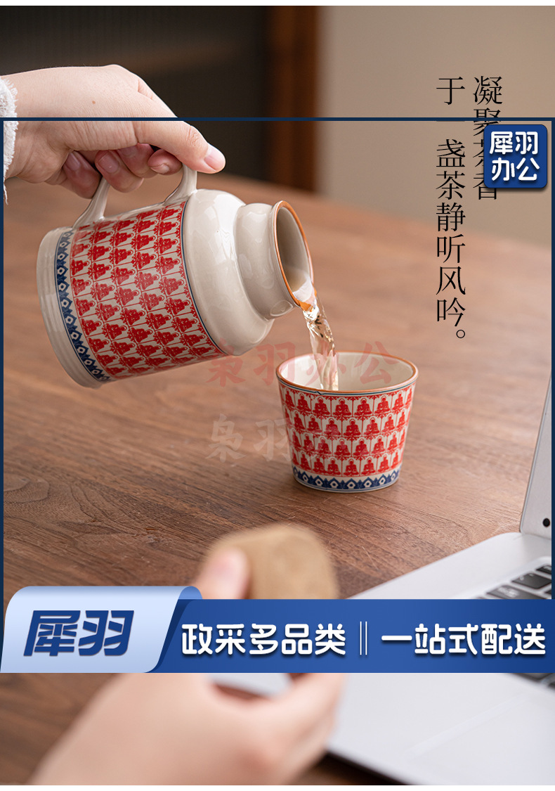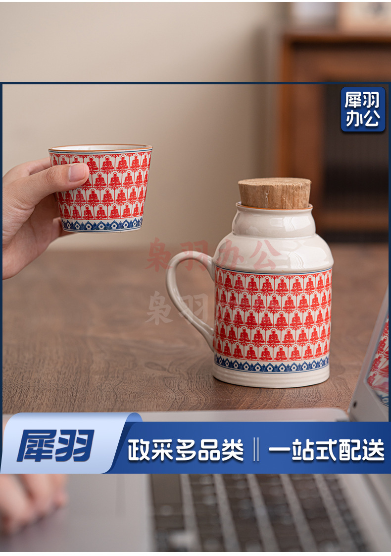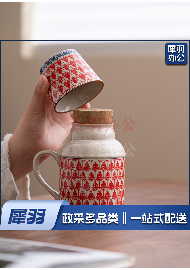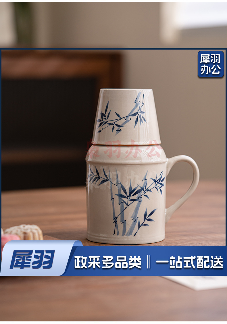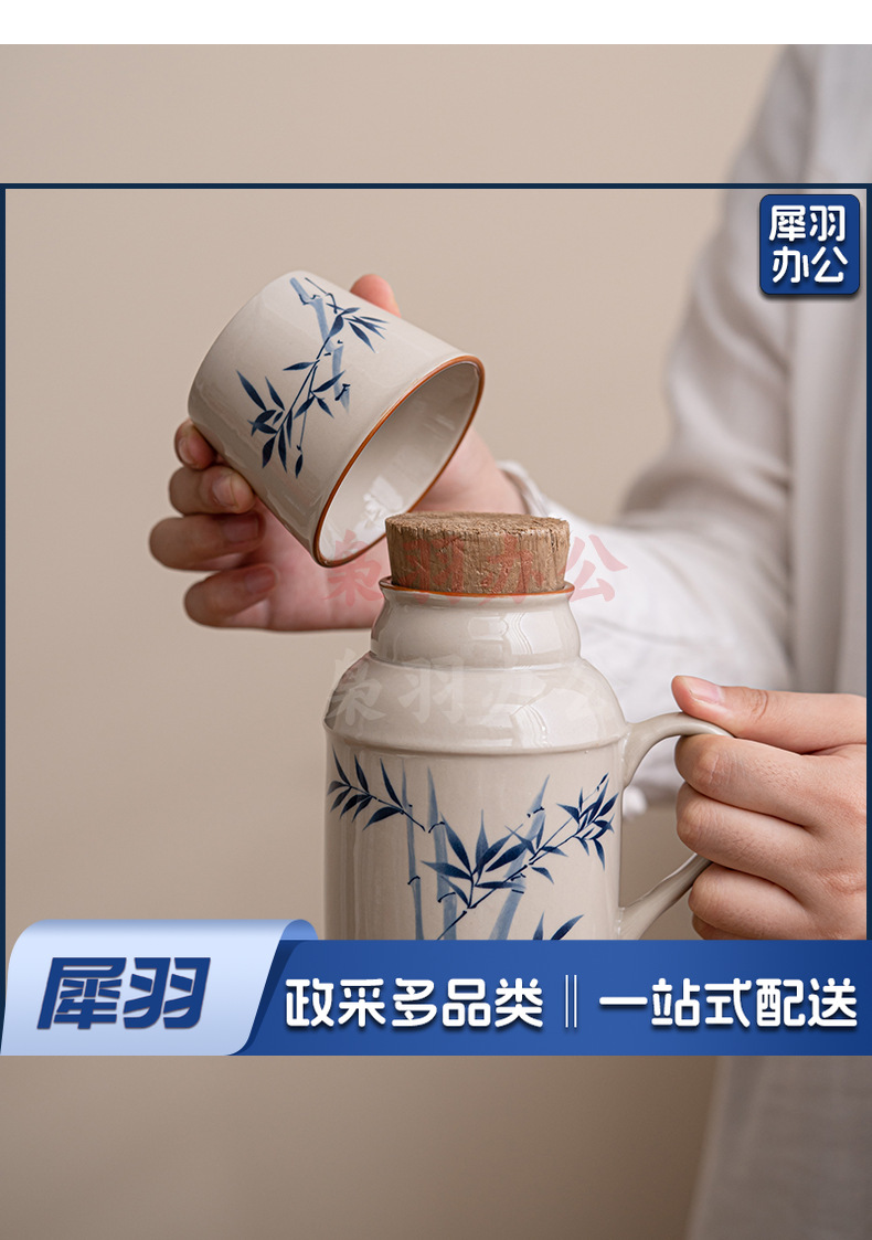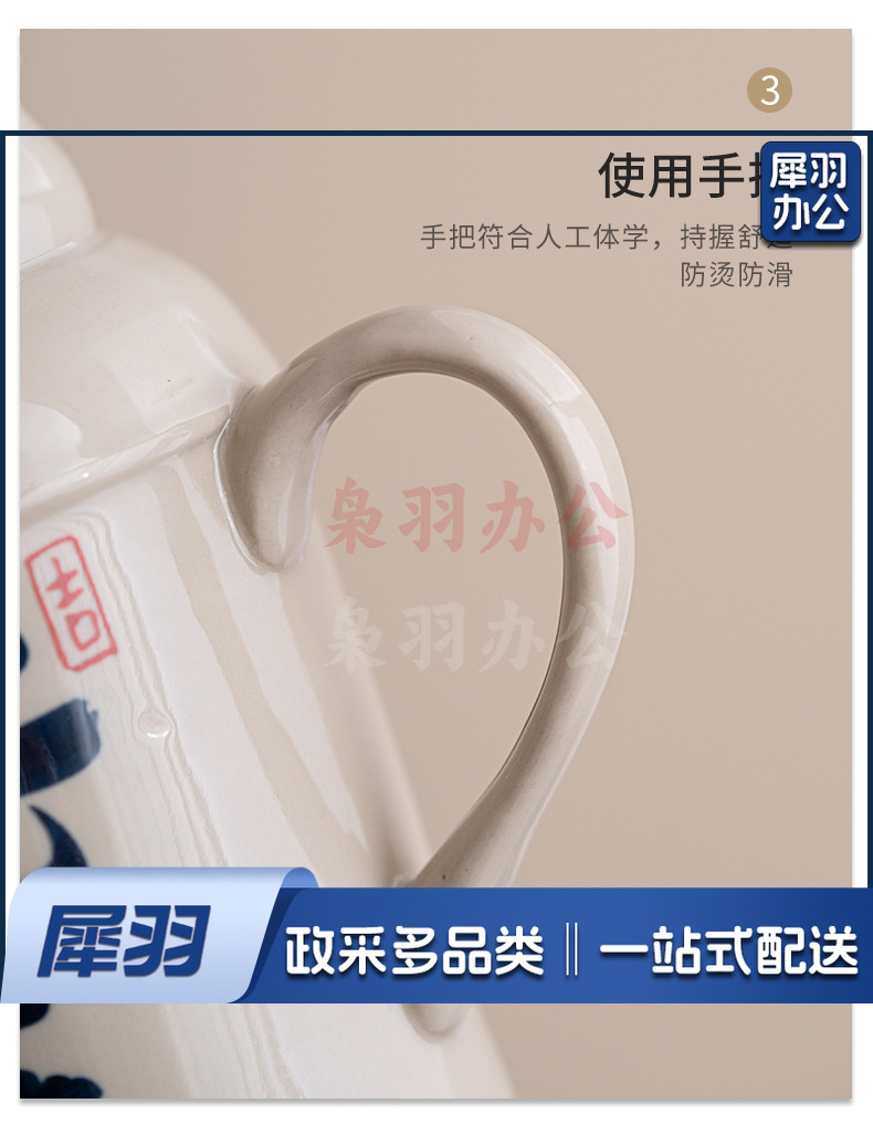 汝窑小暖壶马克杯带盖陶瓷焖茶杯中式大容量保温瓶办公杯子带手柄