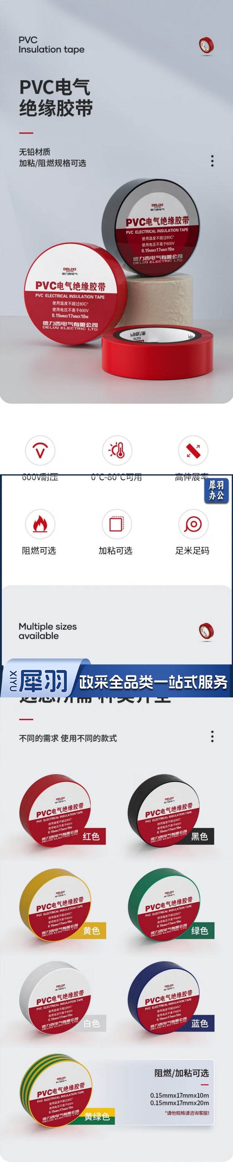 德力西电气 电工胶布绝缘防水胶带 电胶布电工防触电PVC电气胶带