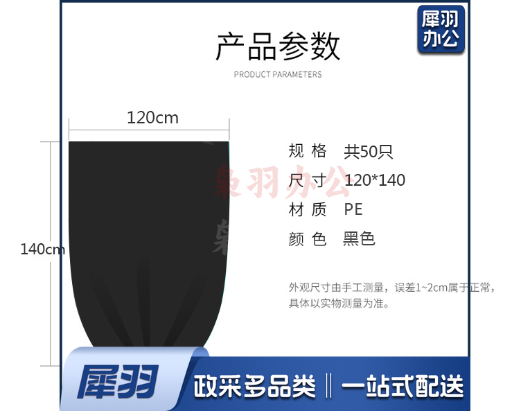 平口120cmx140cm 黑色加厚垃圾袋50个/包