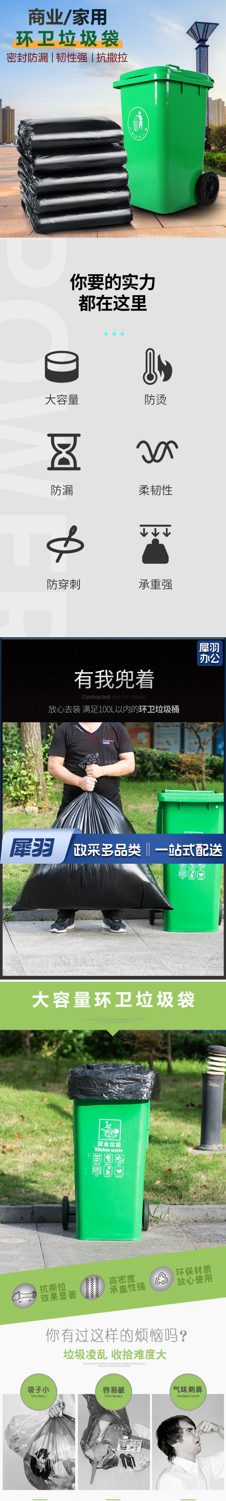 平口垃圾袋 加厚环保分类清洁袋子 120cm*140cm垃圾袋(50只)