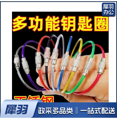 包胶彩色钢丝绳不锈钢钥匙圈绳户内外配件汽车拉伸回弹钥匙扣