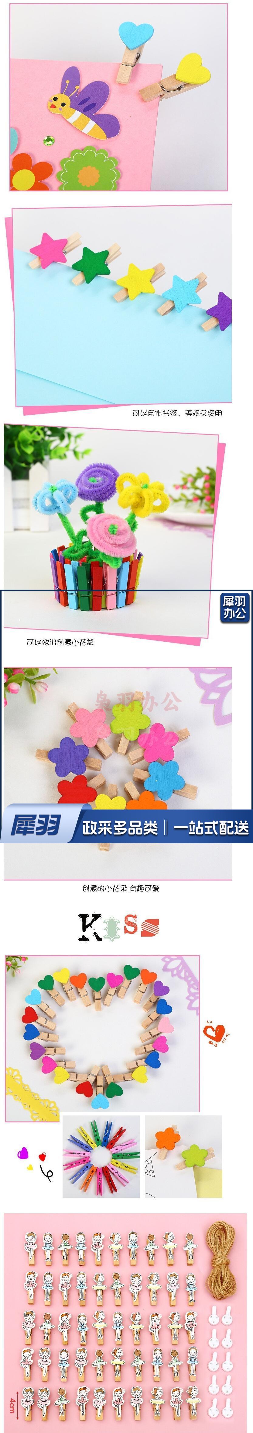 卡通相片夹子 幼儿园手工材料彩色照片木质夹 带麻绳(10个每包)