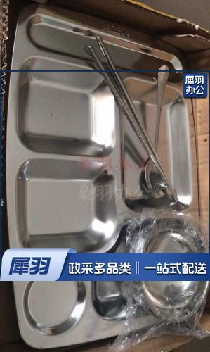 304不锈钢餐盘加厚长方成人快餐盘五格套装(碗勺筷子)